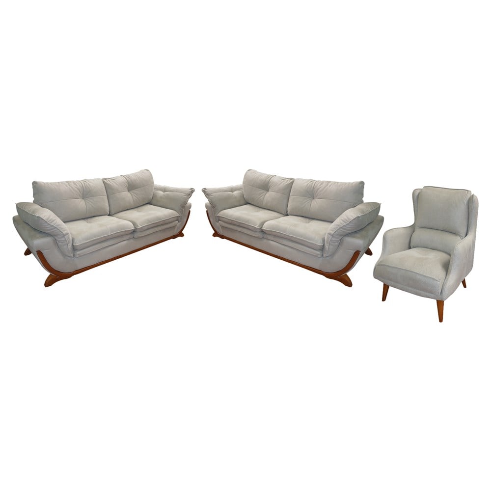 You're reviewing:Sofa set 2+1, BARCELONA, wooden frame, textile upholstery, grey, 3-seater sofa: 230x100xH80 cm; Armchair: 75x80xH95 cm