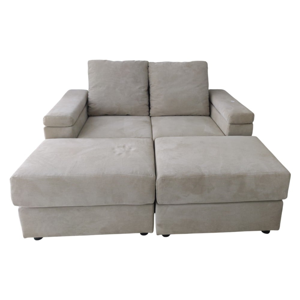 You're reviewing:Sofa, wood frame, textile upholstery, plastic feet, grey