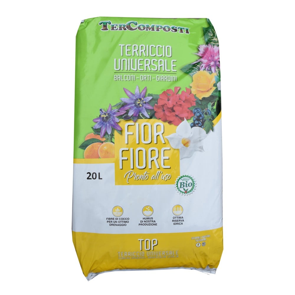 Is a universal quality soil, allowed in organic farming, ready to use, ideal for growing plants, flowers and vegetables in pots, with the exception of acidophilic plants. Very aerated soil rich in high quality peat from northern Europe. Its particular composition has been developed to obtain fast growth and abundant flowering of plants grown in pots, planters, bowls, flower beds and vegetable gardens. Has a mixed organic and mineral basic fertilization to ensure a prompt departure of the root system and therefore of the general development of the plant.Blend characterized by an excellent ratio between blond baltic peats, brown peats, washed coconut fibers and organic matter deriving from humified vegetable matrices. New formula with coconut fiber. Like all soils, this too must be fertilized after the first two/three weeks of its use.