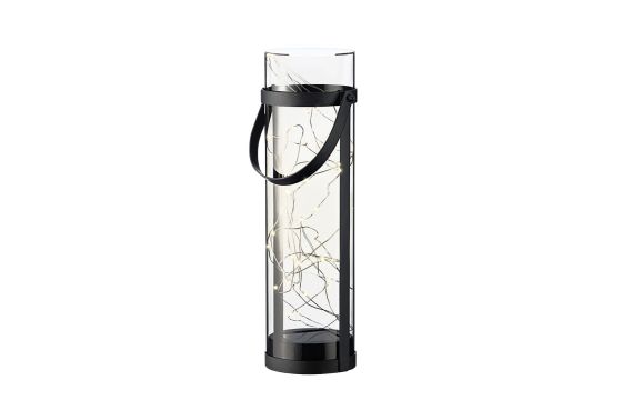 Solar panel light, microLED, warm white color, dimensions 10x34 cm, made of metal and glass, black color. This light offers an elegant and modern design, using solar energy to provide warm and efficient lighting, ideal for outdoor spaces such as gardens, paths or verandas.