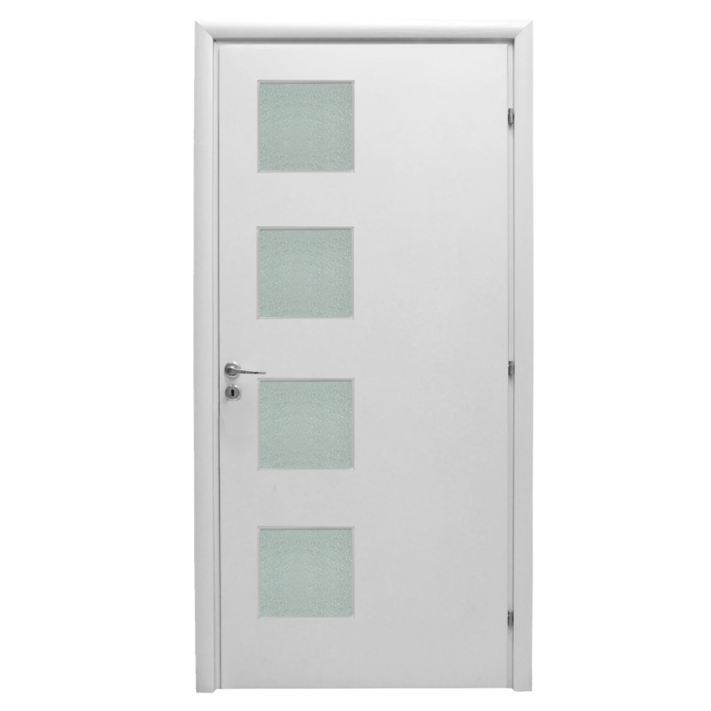 Solid interior glass wooden door, without rebate, without paving, contemporany, with left and right openings 90x205 cm, width 15 cm, white color