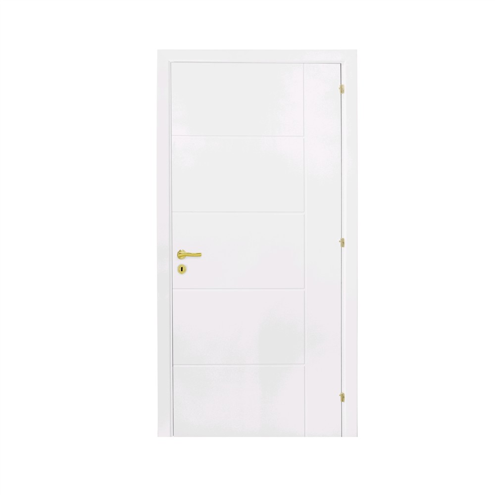 Solid interior wooden door, without rebate, contemporany1, with left and right opening 80x205 cm, 15 cm wide frame white color