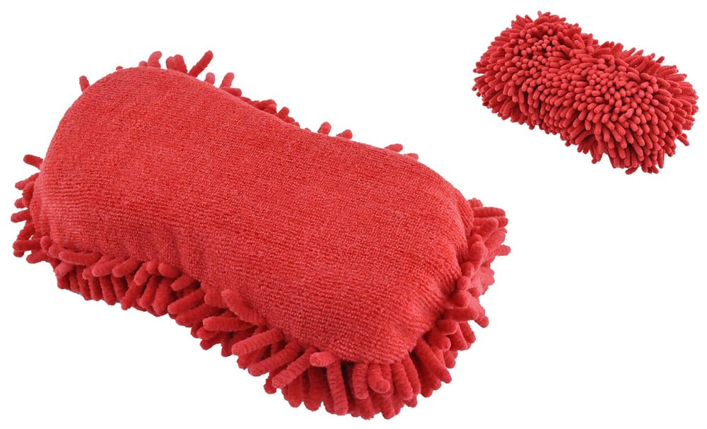 This is an extra large sponge for the thorough vehicle wash,with two different surfaces. The long chenille fibres are very absorbent, hold lots of water and really foam up the shampoo. The smooth side facilitates the removal of stubborn dirt, such as insect deposits.