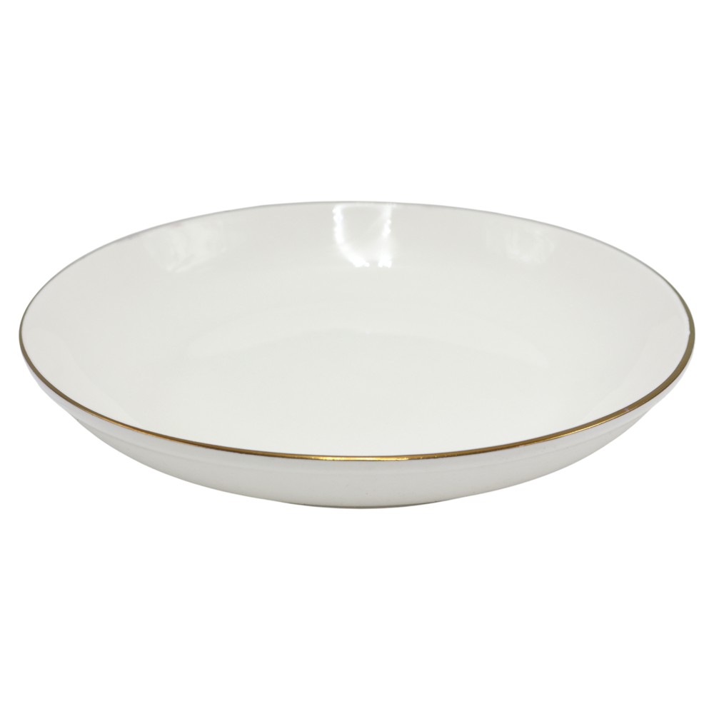 This elegant white ceramic bowl with a gold-colored rim is perfect for serving soups, creams, or other liquid dishes. With a diameter of 18 cm, it provides ample space for a comfortable and refined serving. The gold-colored rim adds a luxurious and elegant touch to your table, while the durable material makes this bowl a practical and aesthetically pleasing choice for any occasion.