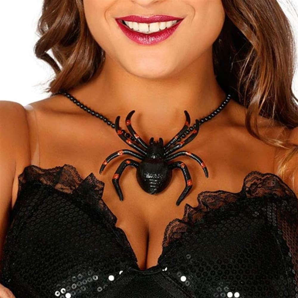 Spider necklace, made of plastic material, in black color. It can be used as an accessory for various outfits or costumes, in case of holidays like Halloween, carnivals or costume parties.
