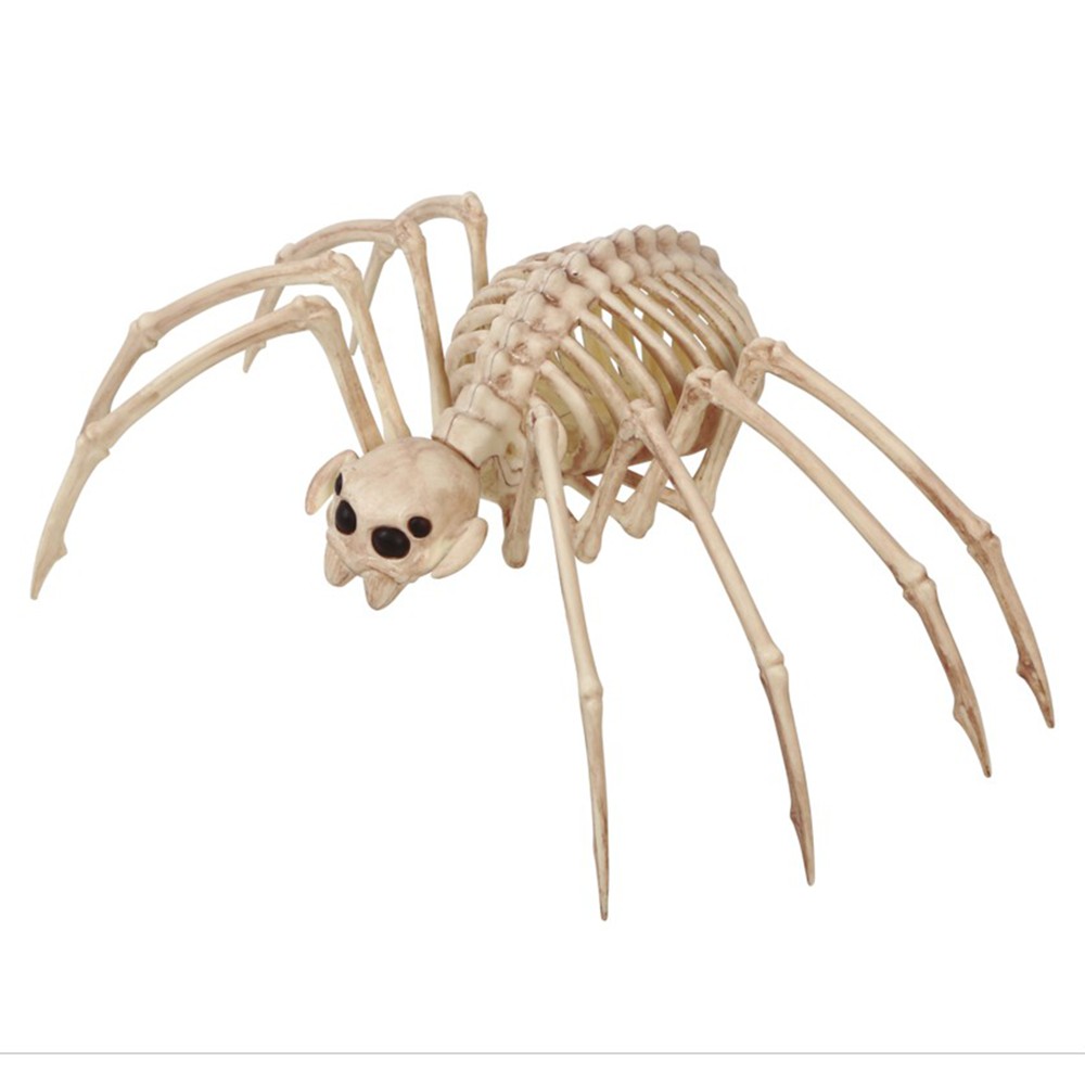 Decorative spider skeleton for Halloween, made of plastic material, size 35x20 cm, beige color. It is used as a decorative object in the Halloween party.