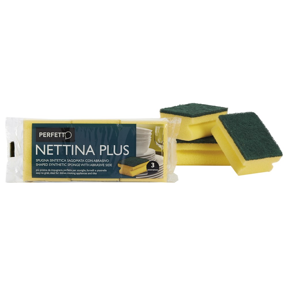 "Nettina", shaped synthetic sponge with abrasive side. Easy to grab, ideal for dishes, cooking appliances and tiles.