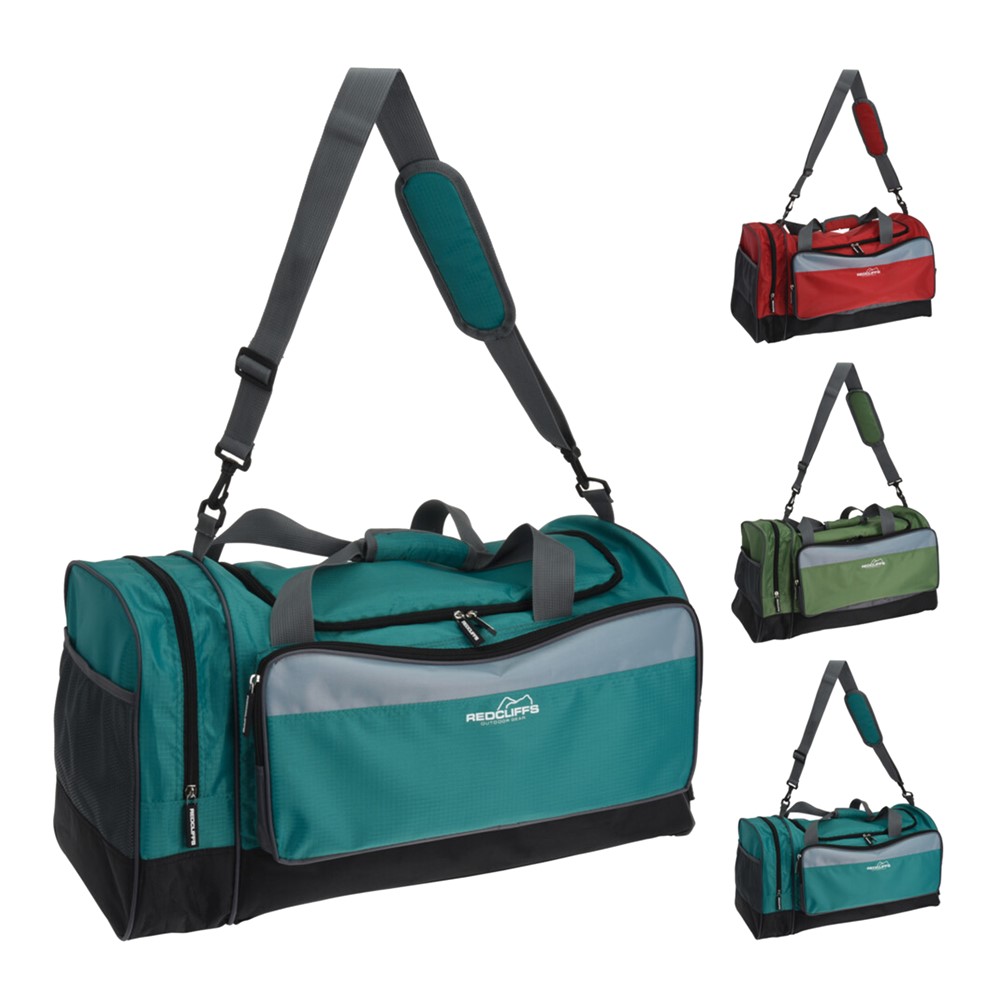 Sports bag, made of durable polyester material, in different colors. The bag is equipped with a large compartment with zipper, small front pockets and side pockets, it has a retaining handle and a shoulder strap of adjustable length, with soft foam filling, which makes it easy to carry and does not hurt the back or shoulders. The bag can be used for storing food and beverages, sports equipment, sportswear, sneakers, towels, etc. This product is suitable for use for fitness gyms, sports courses, etc.