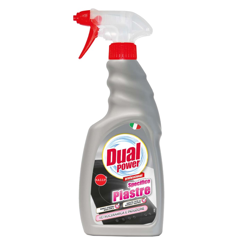 Spray cleaner for stove plates, professional quality, with a capacity of 500 ml. It is mainly used in the kitchen for effectively cleaning grease and dirt from the surfaces of ceramic glass hobs or induction plates of stoves, without scratching or damaging them. This product is certified by H.A.C.C.P for food safety.
