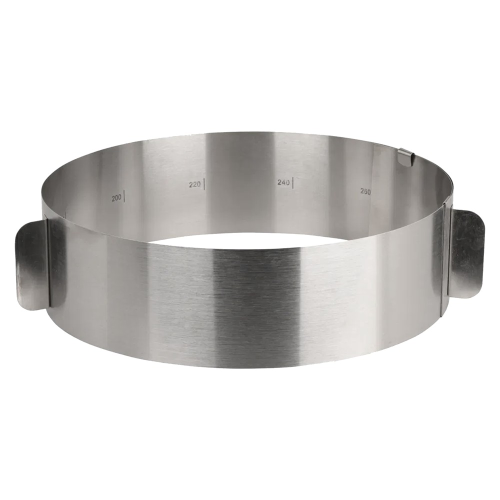 This round cake mold is an essential accessory for any kitchen, perfect for baking cakes, tortes, and a variety of desserts. Made from high-quality stainless steel, it ensures even heat distribution and excellent resistance to warping, delivering consistently great baking results. With an adjustable diameter from 16 to 30 cm, it offers maximum flexibility, making it suitable for recipes of different sizes. The silver color gives it a modern, professional look, while the smooth surface makes it easy to clean after use.