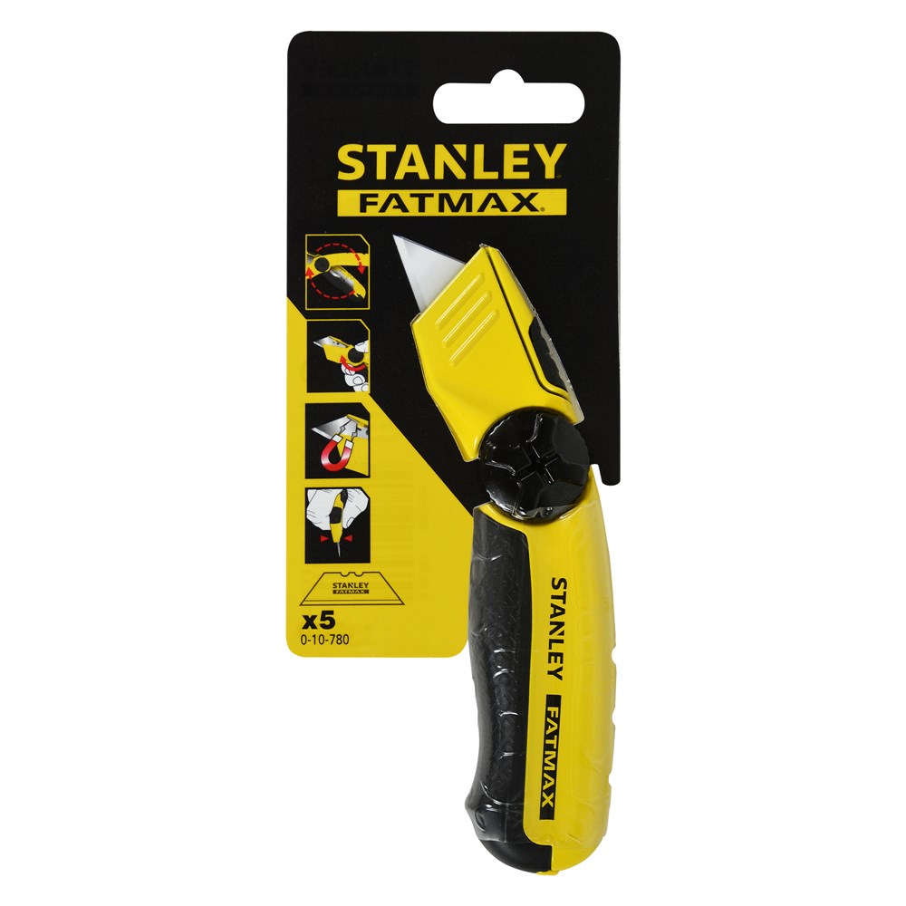 The Stanley STA0-10-780 fixed blade knife comes with 5 new FatMax blades. It has a magnetic nose which stops the blade from falling out for easier changing, blade clamp for heavy-duty applications and a push button blade door release for quick and easy blade change. There is also an auto rise blade storage holder that presents 1 blade for changing, a hardened steel wear plate in the nose which prolongs the useful life of the knife. In addition, this blade knife has a thumb pad for comfort and the ergonomic cutting angle makes it ideal for flooring applications.
