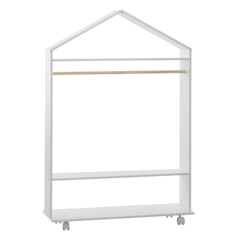 Static clothes hanger in white, made of MDF material. In size 80.5x1.36x120 cm, it has two wheels which make it more practical to move it in different environments that you want. It can be used in children's rooms to organize their clothes, but also to give a design to the room.