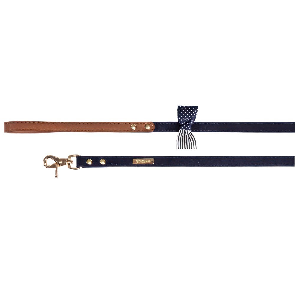 Pretty leash in real leather decorated with a cotton bow, with an American flag texture. The small parts are in golden metal. Available in two different sizes.