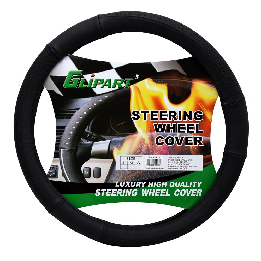 Steering wheel cover, Glipart, leather, 90175, size M, black