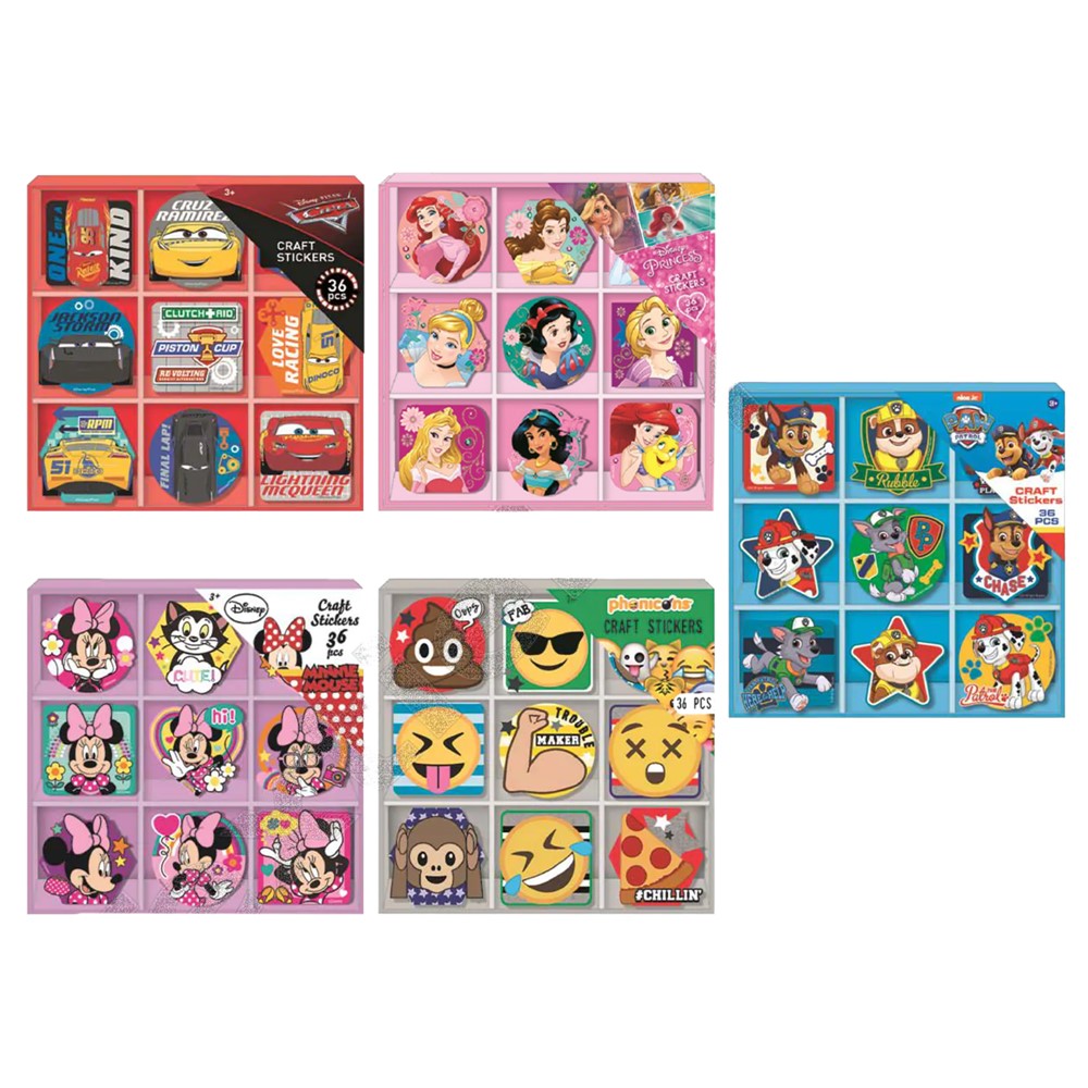 Stickers for kids, with Disney design, made of paper material, in assorted colors. The stickers are used to decorate books, notebooks, letters, postcards, gift boxes, as well as they can be used to decorate children's bedrooms, and can be placed on paper and cardboard surfaces, various furniture, doors, etc.