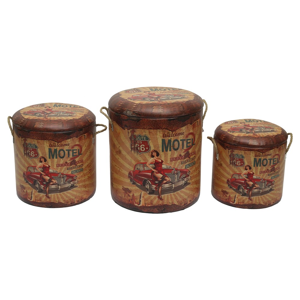 Poof print, is an elegant, bold and versatile piece at a reasonable price. Can be used as a seat anywhere in the home or the bars. This puppet will be a rich addition to every room, also offers hidden storage for household objects, like throw blankets, magazines, etc. This furniture will look great in modern and traditional interior environments. The set includes: Dia.27xH32 cm; Dia.31xH36 cm; Dia.36xH44 cm