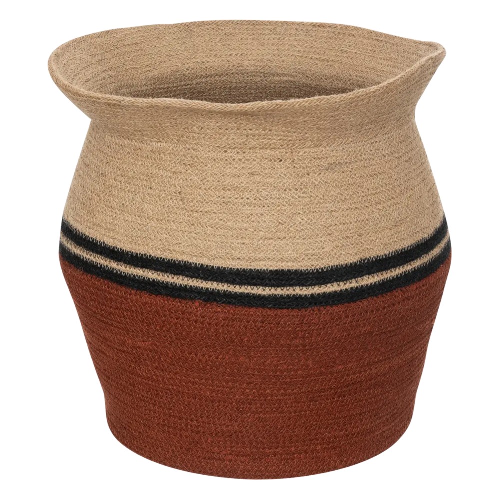 Round-shaped storage basket, size M. It is used for placing and storing various items, clothes, children's toys, magazines or other accessories, while also helping to optimally organize different indoor spaces. The basket is made of jute material, which makes it durable and lightweight at the same time. This product is suitable for use in bedrooms, living rooms or bathrooms.