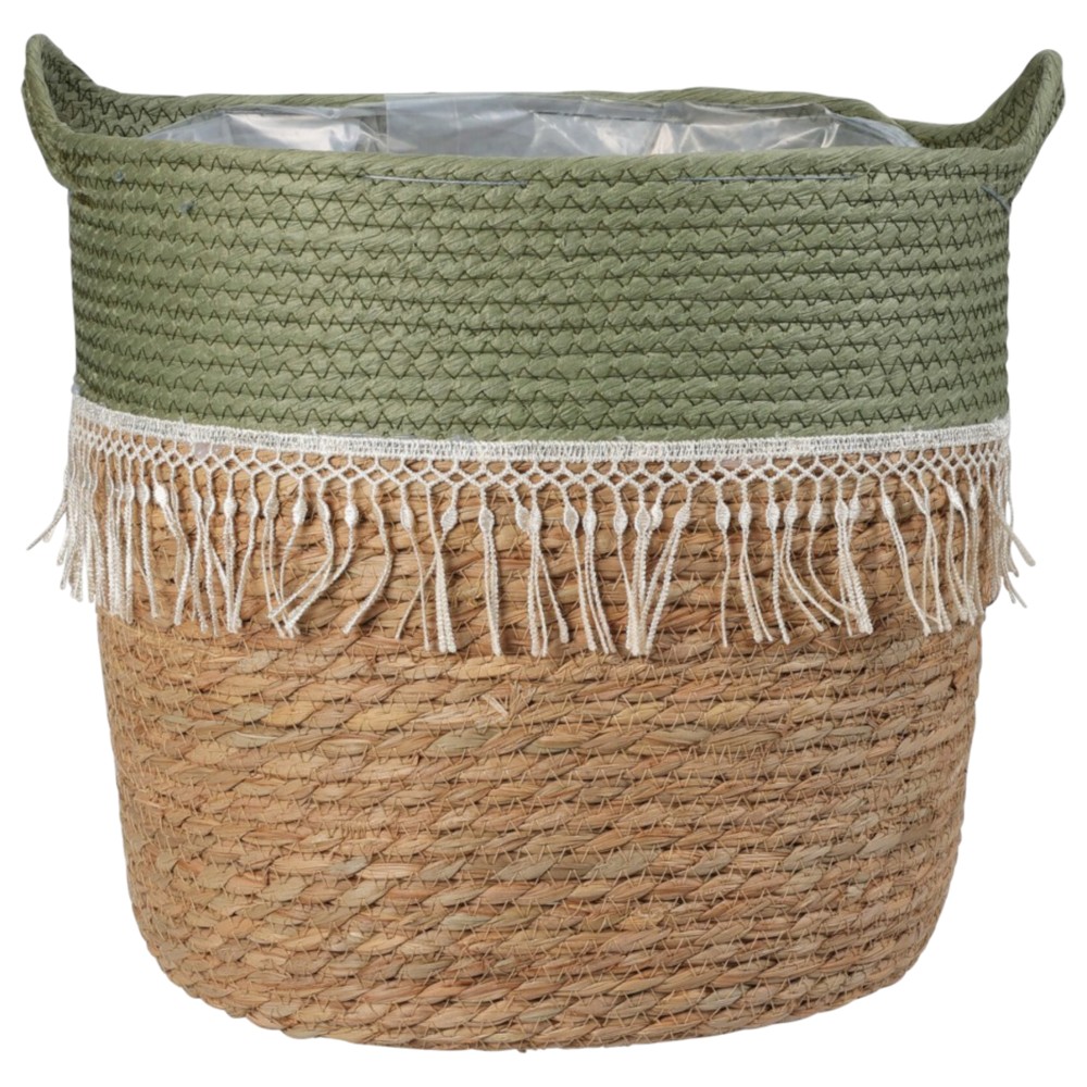Storage basket, rattan, textile, green, brown, H26 x ø33 cm
