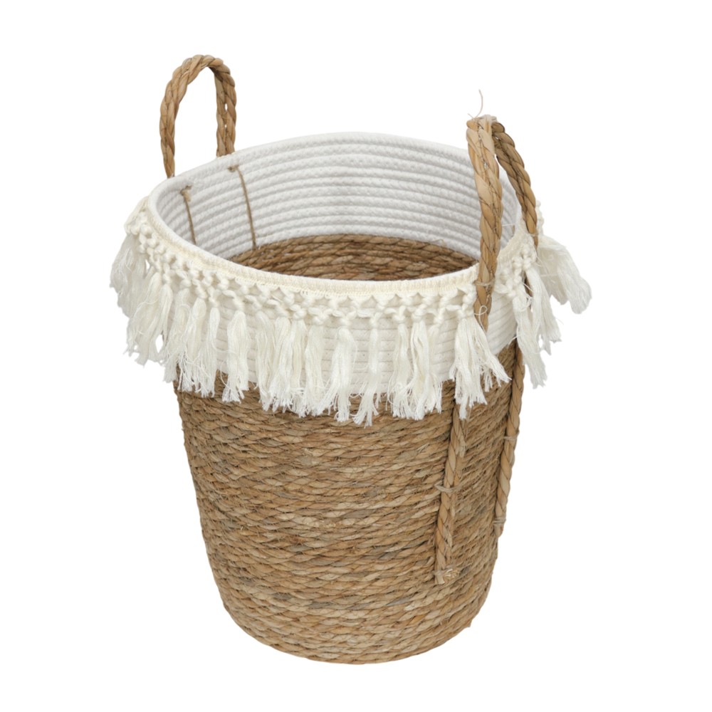 The storage basket made of straw material and combined with a boho style, is a very fine and elegant accessory that should be added to the category of products that you need. The white color combined with that of natural wood adds a very pleasant aesthetic appearance and that will fit perfectly with your furnishing style. It comes in dimensions Ø24xH24 cm and has a considerable space to organize various items. It can be placed in different spaces where you want and you can also use it in different compositions. If you have an artificial tree and want to add a stylistic effect, you can also use it in the form of a vase. The ideal product with many functions that will look perfect in any of your spaces.