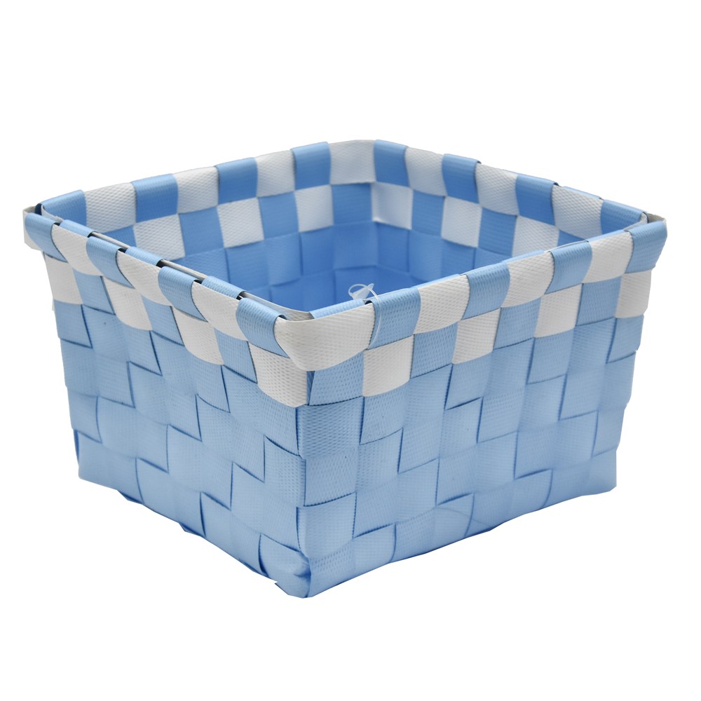 Storage basket, wicker, blue/white, 14x14xH9 cm