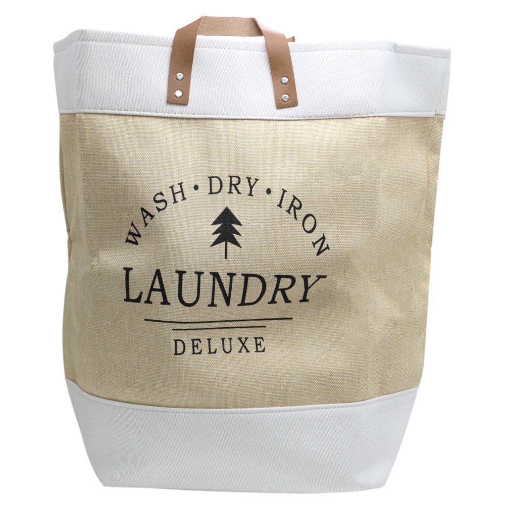 Storage box, fabric, white/beige, Dia.33xH54 cm