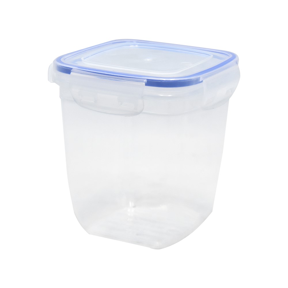 This container is made of high-quality plastic. It is transparent in color, with a blue silicone overlay on the underside of the lid standing out. It ensures tightness and prevents leakage. The transparency of the container allows for a quick preview of the contents, which makes it easy to find what we need. A flat, profiled lid allows you to stack containers on top of each other , which saves valuable space. Closed with latches on each side. The container is designed to store various types of food in both the refrigerator and the freezer. It will also work well in a pantry, cupboard or on a kitchen counter. You can use it in a microwave oven to heat previously cooked food (without the lid).