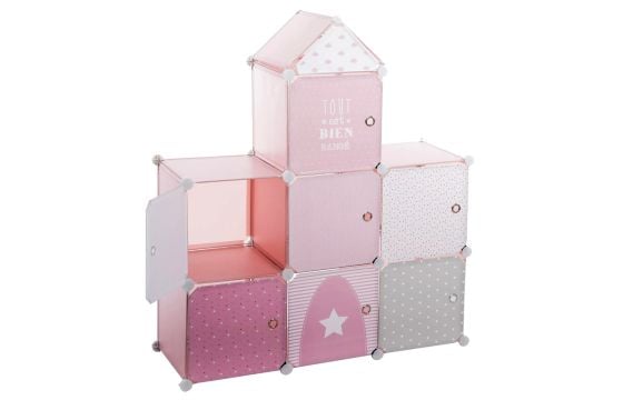 Storage for children's room. 94.5x32x109 cm. which serves as both storage and decoration. Made of material with fully removable plastic structure. Easy to clean and assemble. It consists of magnetic doors. Modern and attractive design for children. pink color