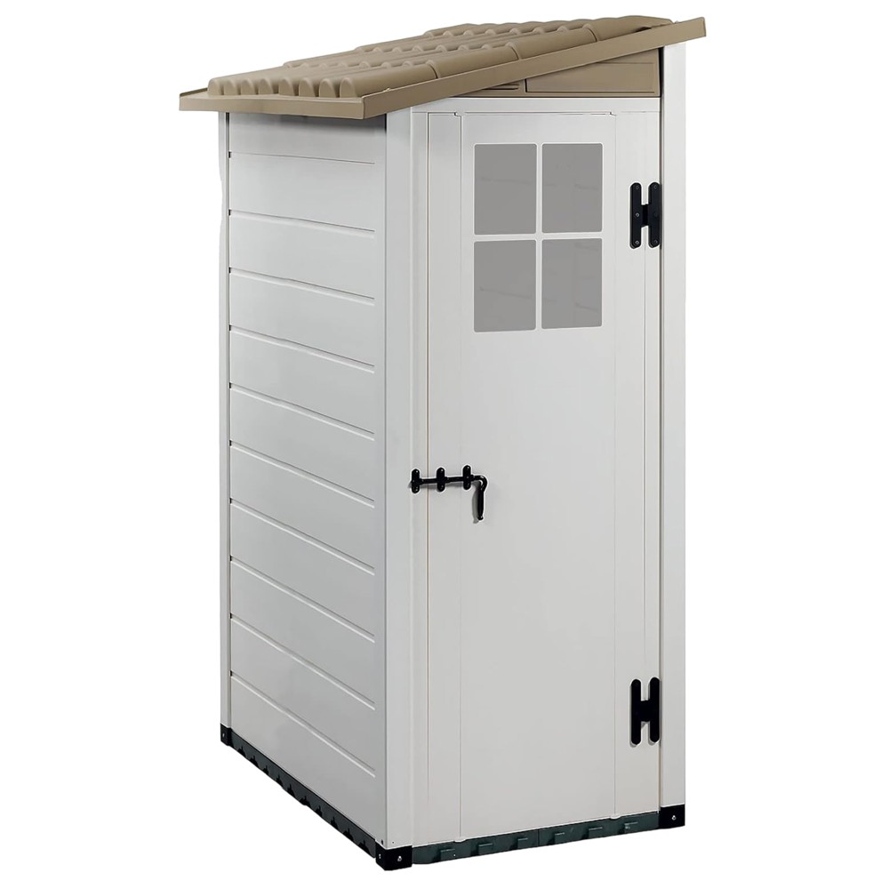 The Garofalo PVC shed, thanks to its compact size, is perfect for both your garden and your porch for storing garden tools, the shed with PVC material is very easy to install, resistant to bad weather and UV rays, it has the floor included and requires no maintenance. The door can be locked and the house can be cleaned very easily, the PVC material of the house can be painted and has 60 kg/m2 resistance to snow load, dimensions 95 x 139 x 201 cm, and weight 62 kg, color white - beige .