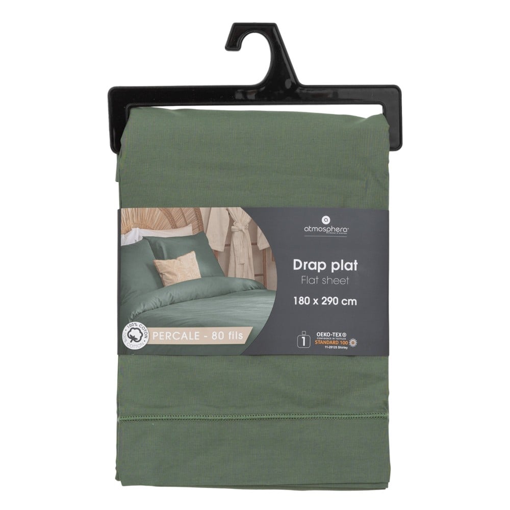 Straight single bed linen, Landiha, cotton, green, 180x290 cm