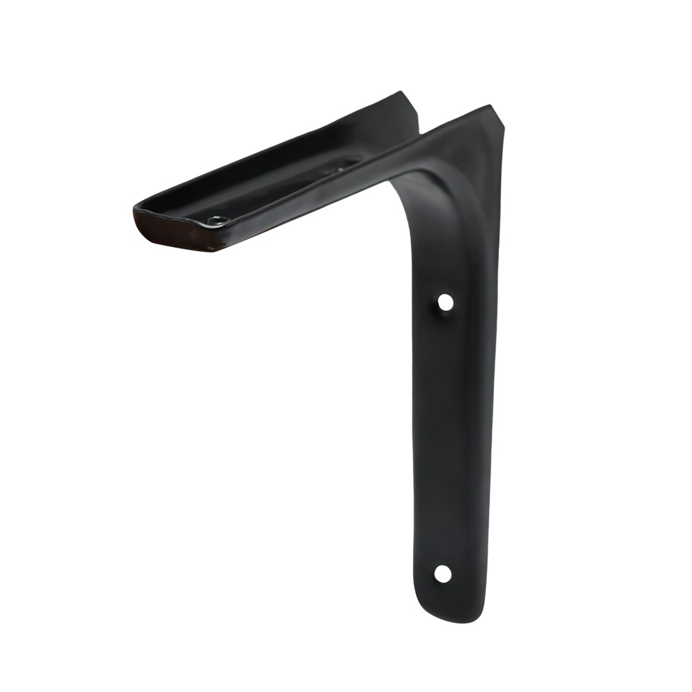 Shelf bracket, made of sturdy steel material, which serves as a decorative and functional accessory for various environments. The constituent material is resistant to use, heavy weights, rust or abrasion. It is used for wall mounting of self-supporting shelves, but it can also find other applications in professional and non-professional environments.