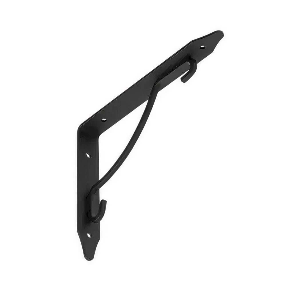 Shelf support made of steel material, in black color, which serves as a decorative and functional accessory for different environments. The component material is durable against use, heavy weights, rust or corrosion. It is used for wall mounting of self-supporting shelves, but can also find other applications in professional and non-professional environments.