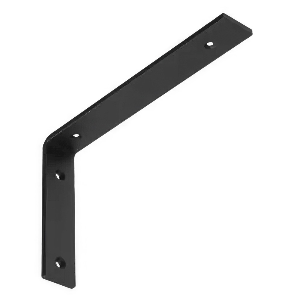 Shelf support made of steel material, in black color, which serves as a decorative and functional accessory for different environments. The component material is durable against use, heavy weights, rust or corrosion. It is used for wall mounting of self-supporting shelves, but can also find other applications in professional and non-professional environments.