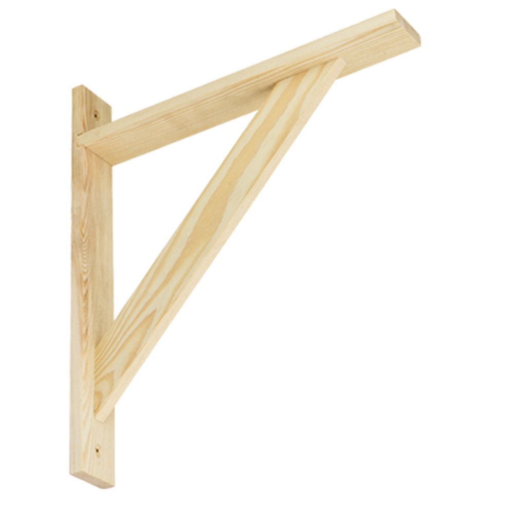 Reinforced plywood bracket, made of pine wood material, in natural color, with dimensions of 32x28 cm, which serves as a functional accessory for different environments. The constituet material is resistant to use and heavy weights, as well as it can be easily coated with any colour of paint, varnish or wood stain. It is used for wall mounting of self-supporting shelves, made of the same material, and it can find application in professional and non-professional environments.