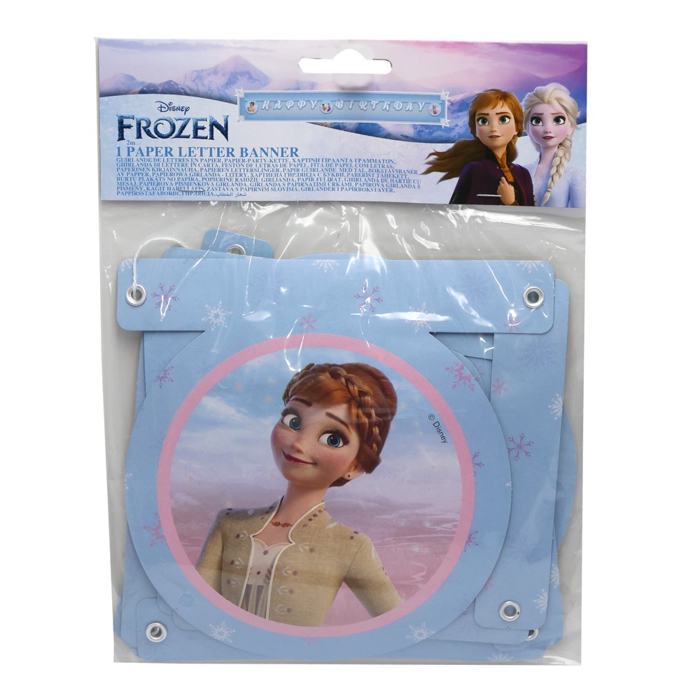 String, Frozen II, Happy Birthday" is a string with the theme of the movie "Frozen II" and the letters "Happy Birthday". The string is made of cardboard material and has a length of 200 cm. This string is decorated with the characters of movie "Frozen II". This product is suitable for use at Frozen II themed birthday parties, theme parties with the theme of this movie, or other festive events where you want to mark a special birthday with your favorite characters from Frozen .