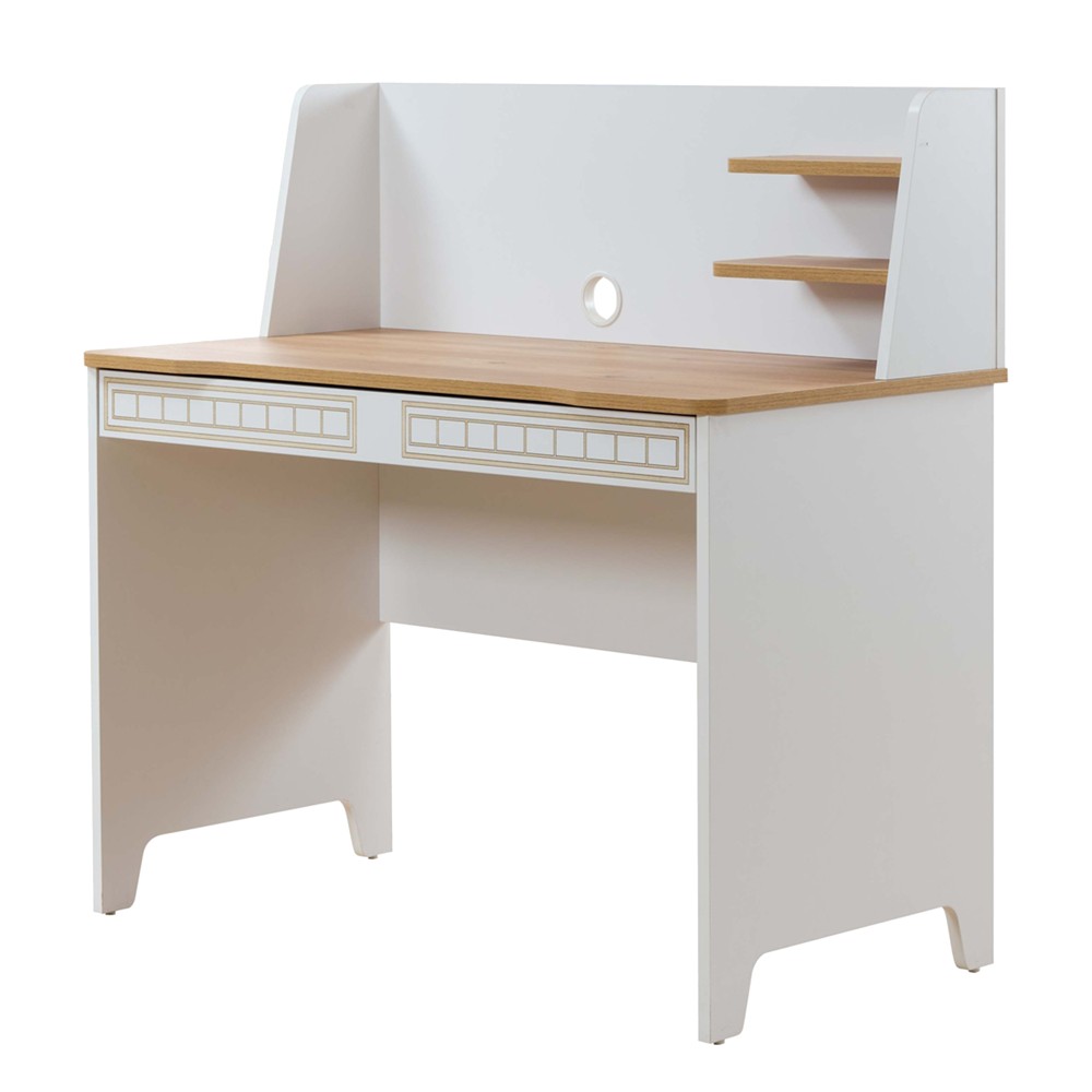 Study desk, Mango, melamine, white/natural, 110x59xH111 cm