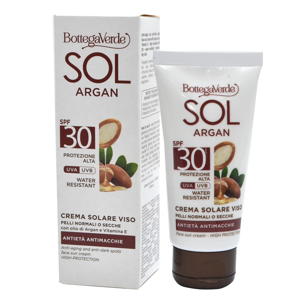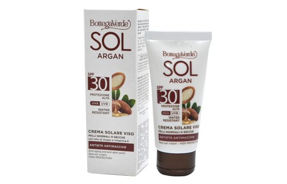 Sun protection face cream, with a dermatologically tested formula, which helps protect the skin from sunburn and prevents the signs of aging caused by the damaging effects of UVB and UVA rays. The cream has a sun protection factor of 30 SPF for an effective skin protection and contains argan oil with a nourishing effect on the skin. This product is suitable for use on normal or dry skin. How to use: Apply evenly before sun exposure and wait for it to be absorbed by the skin. Repeat the application regularly, to maintain protection, especially after you have bathed in the sea, after you have dried with a towel and in case you have sweated. Avoid contact with eyes.