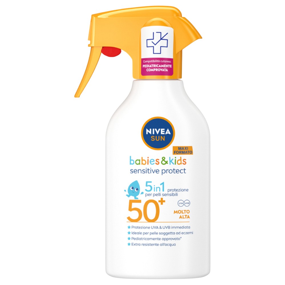 Nivea Sensitive Protect 5 in 1 SPF 50+ is an advanced protective cream specially designed for children's sensitive skin. It offers very high protection against harmful UVA and UVB rays, preventing burns and sun damage. The mild and hypoallergenic formula protects children's delicate skin from irritation and helps maintain its natural moisture. This protector is also resistant to water and sweat, providing lasting protection during games and outdoor activities. Apply a sufficient amount of cream to the child's skin, at least 15 minutes before sun exposure. Reapply every 2 hours and immediately after swimming, sweating or towel drying for lasting protection.