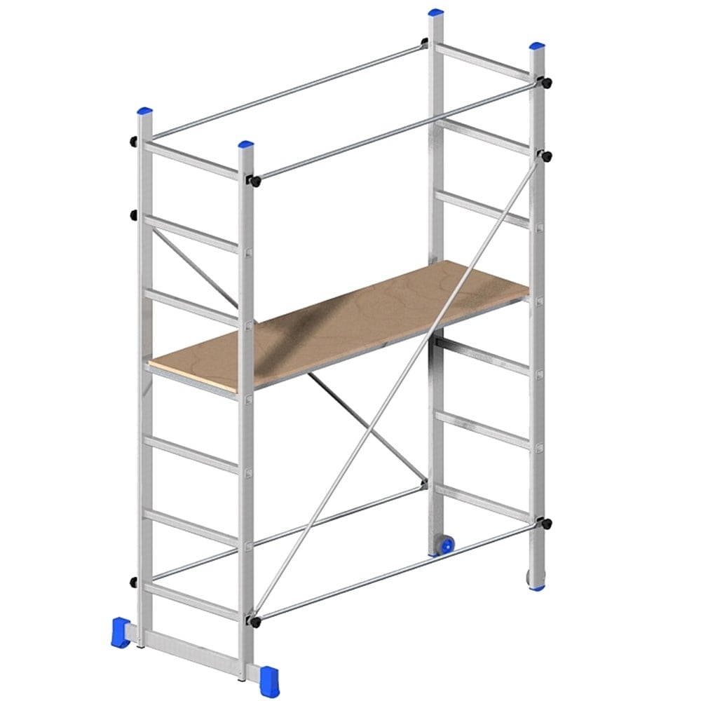 SUPERMINIO in aluminium has the right sizes for internal work. Needed to paint, apply wallpaper,mount the plasterboard and for various maintenance.Packaged in shrink.Work platform included equipped with 2 wheels for easy moving.Stabilizer base mm 800