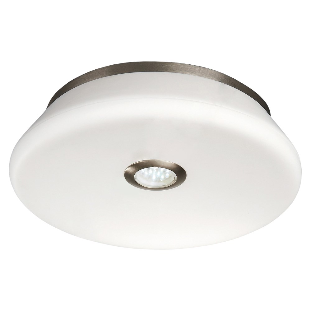 SURF ceiling lamp white 1x22W 230V 1x(LED16)0.96 W .Light is an element that transforms the space, creates light-shade contrasts and highlights the architectural details of the interior spaces.This ceiling lamp with a circular shape, consisting of white opal glass, concave, combined with metallic spot bringing elegance and contemporary style to your interior environments of residential, bars and restaurants.
