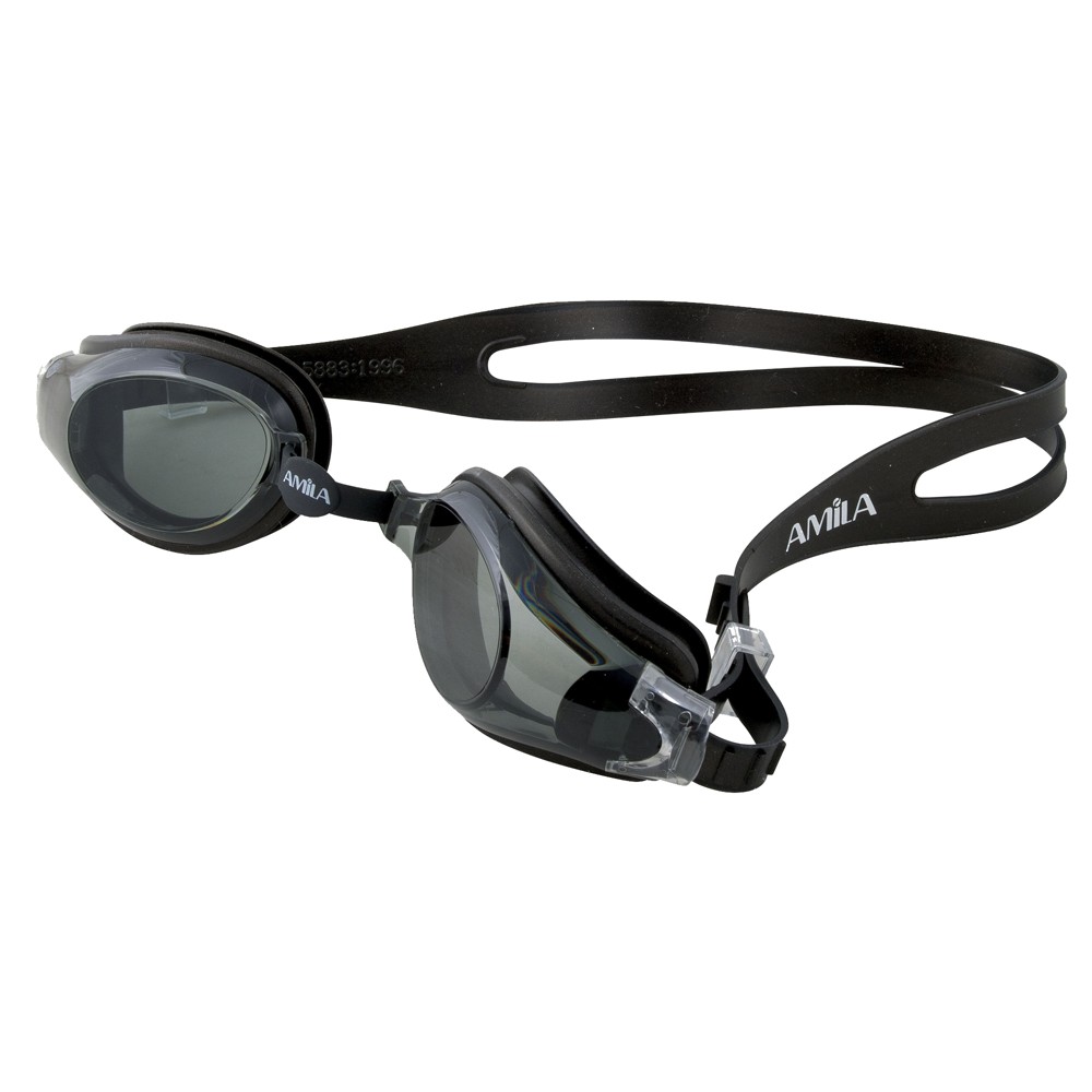 Swimming goggles by AMILA with silicone strap suitable for teenagers/adults. The lens of the glass is colored while around the eye you will find silicone for the perfect fit. The bridge of the nose is adjustable for a comfortable fit of the glass on your face. Finally, there is an adjuster on the strap to make it bigger or smaller and to fit properly on your head without water getting in, while at the same time being comfortable without putting too much pressure on you. The back strap is double and joins towards the front, this way you will be able to adjust even the binding at the back of the head (high or low)