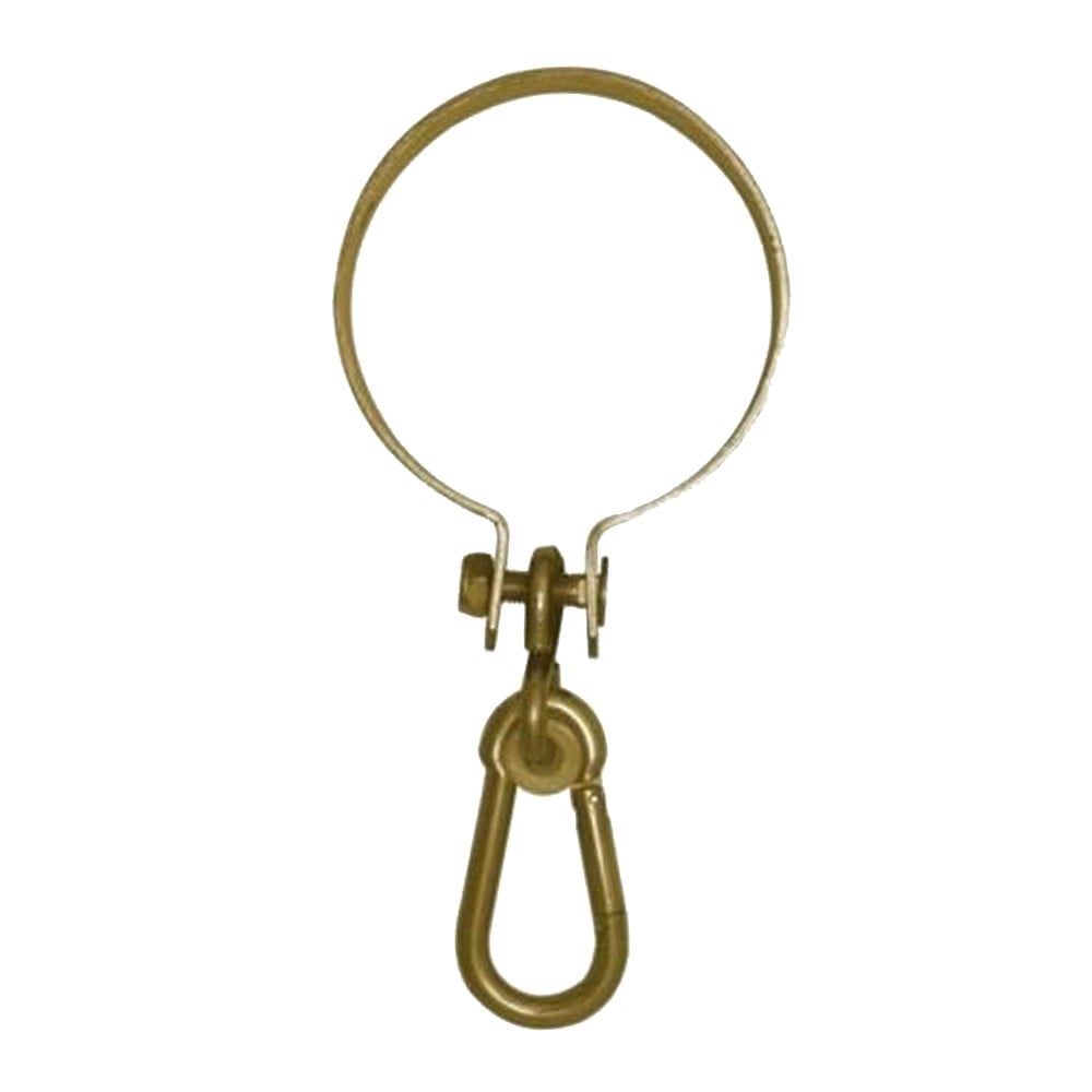 Fixing for mounting swings to a wooden round beam. The holder with a carabiner is designed for mounting to round beams with a maximum diameter of 8 cm. The holder should be installed in pairs.
