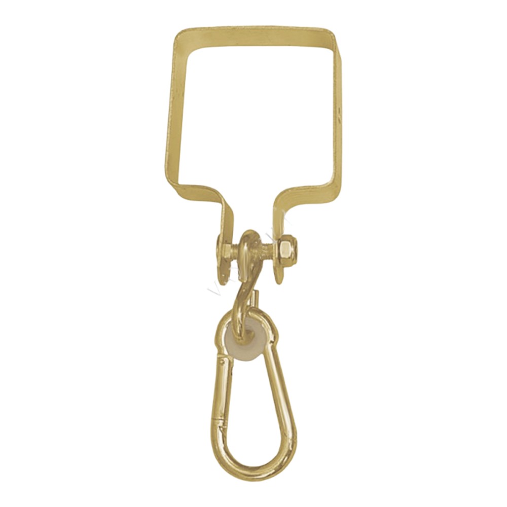 Fixing for mounting swings to a wooden round beam. The holder with a carabiner is designed for mounting to round beams with a maximum diameter of 9 cm. The holder should be installed in pairs.