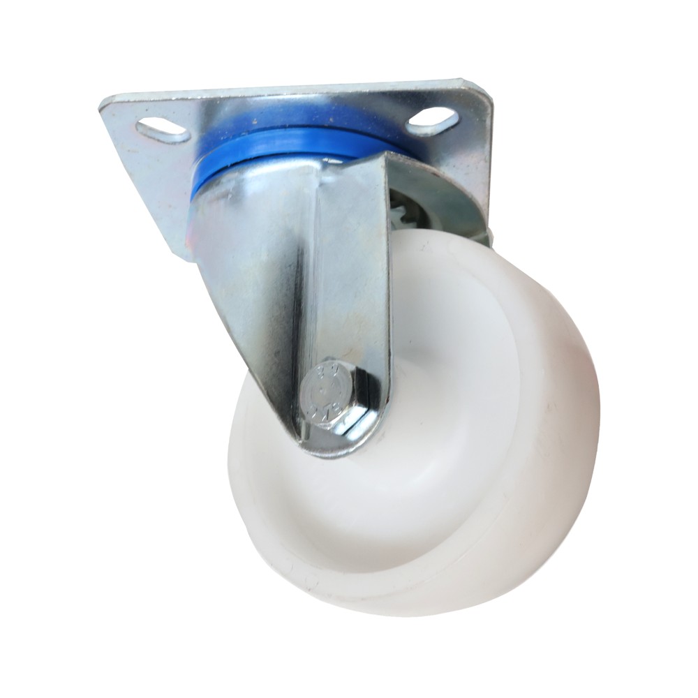 This caster helps move heavy loads on smooth, hard surfaces and finished concrete floors where quiet movement and floor protection are vital. It attaches easily with a plate and 4 screws.