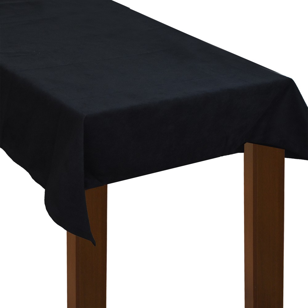 Table cover in rectangular shape, made of cotton material, size 150x150 cm, in black color. Its component material is resistant, it can be washed in the washing machine at 40°C, preserving the color and softness, and it is easy to iron as it does not hold wrinkles. This tablecloth is suitable for family environments in daily use.