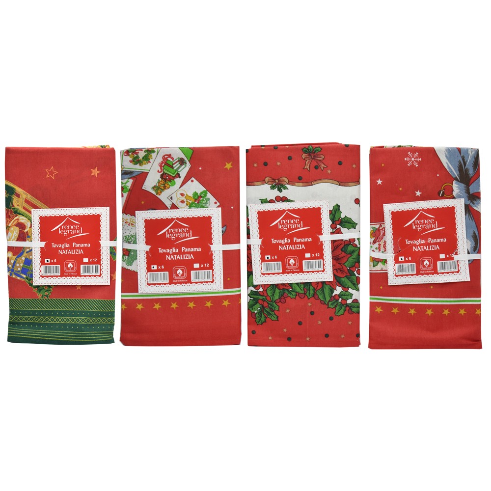 Rectangular tablecloth, made of polyester material, with Christmas design. The component material is resistant to washing, does not absorb fat and does not hold wrinkles, which makes it easier to wash and iron. It is mainly used in domestic environments, for holidays such as Christmas and New Year.