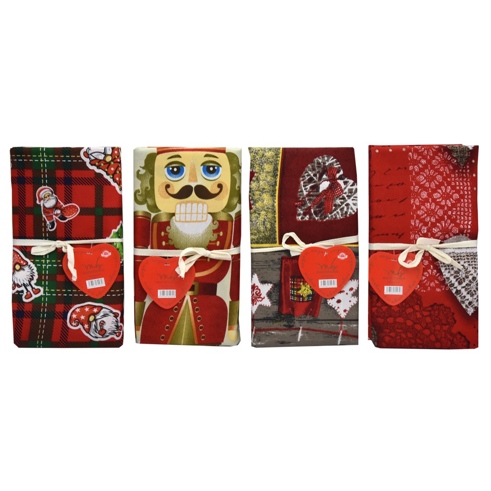 Rectangular tablecloth, made of polyester material. The component material is resistant to washing, does not absorb fat and does not hold wrinkles, which makes it easier to wash and iron. It is mainly used in domestic environments, for holidays such as Christmas and New Year.