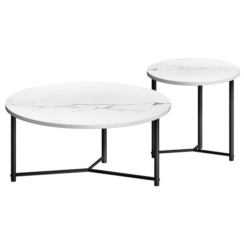 Table in the middle of the set, metal/mdf/melamine, white/black, φ80x39.5cm;φ45x45.5cm