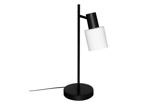 Table lamp with E14 bulb, elegant and modern design. It has a height of 45 cm and metal material with glass, in black color. Ideal for adding a stylistic touch and soft light to any table or workspace.