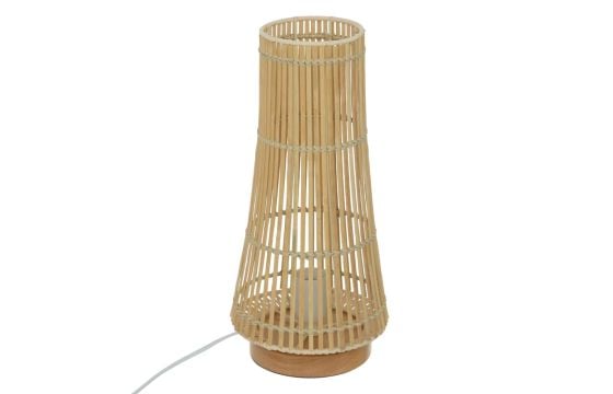 Table lamp with E27 bulb, height 38 cm, with natural bamboo filament. The unique and natural design creates a warm and relaxing atmosphere, giving an organic and elegant touch to any space. Perfect for modern and natural furnishings.