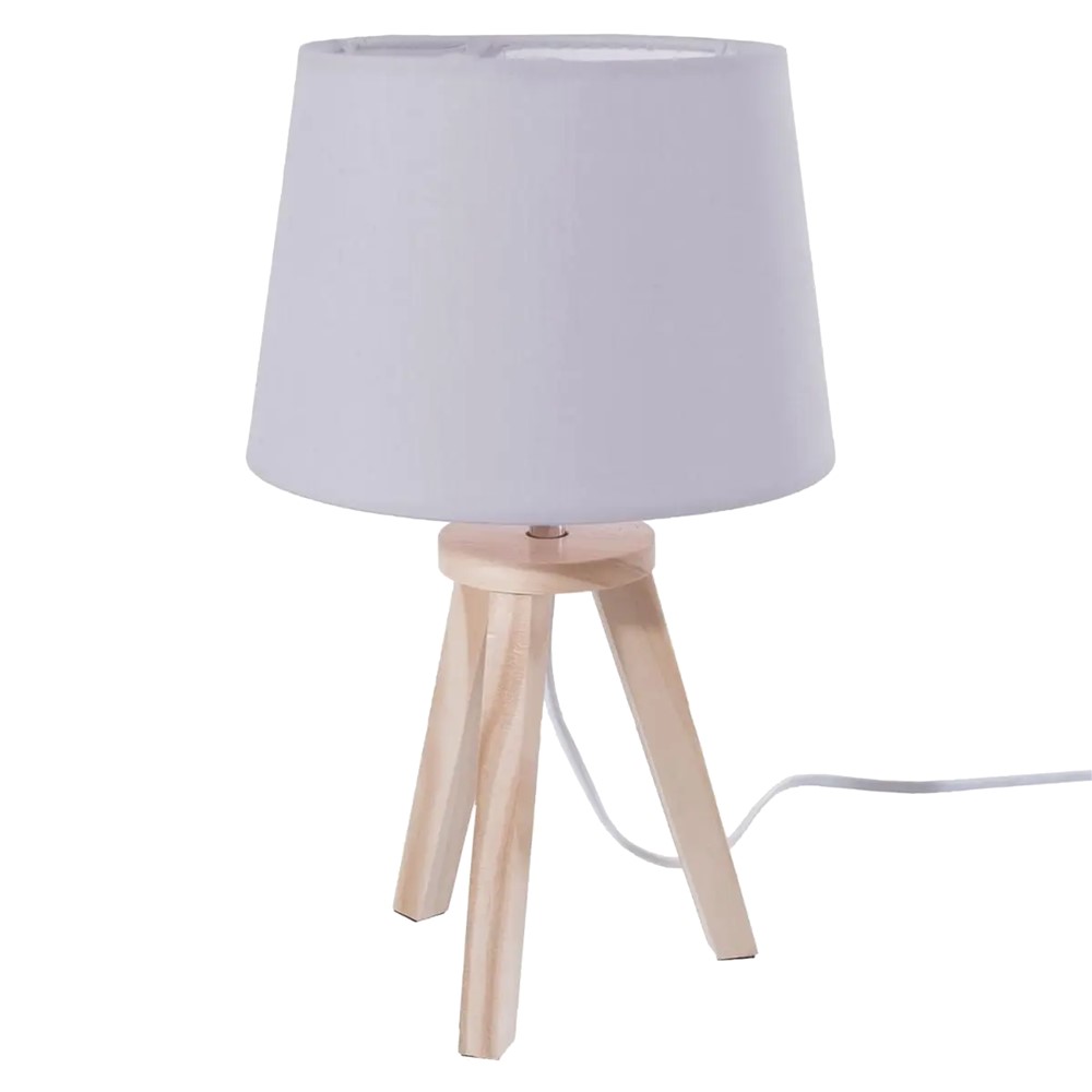 Table lamp (tripod), E14, 1x25 W, wood / textile, H30.5 cm.The robust details make the minimalist design particularly refined. Gray color of lamp shade cominated with wooden legs makes it extremely suitable to personalize children's rooms.